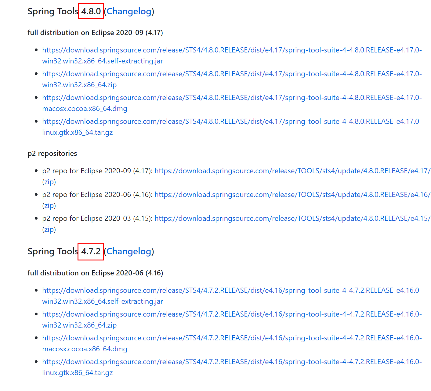 버전별로 잘 정리되어 있는 스프링들을 볼수 있다. 버전과 환경에 맞게 눌러서 다운받아 주면 끝