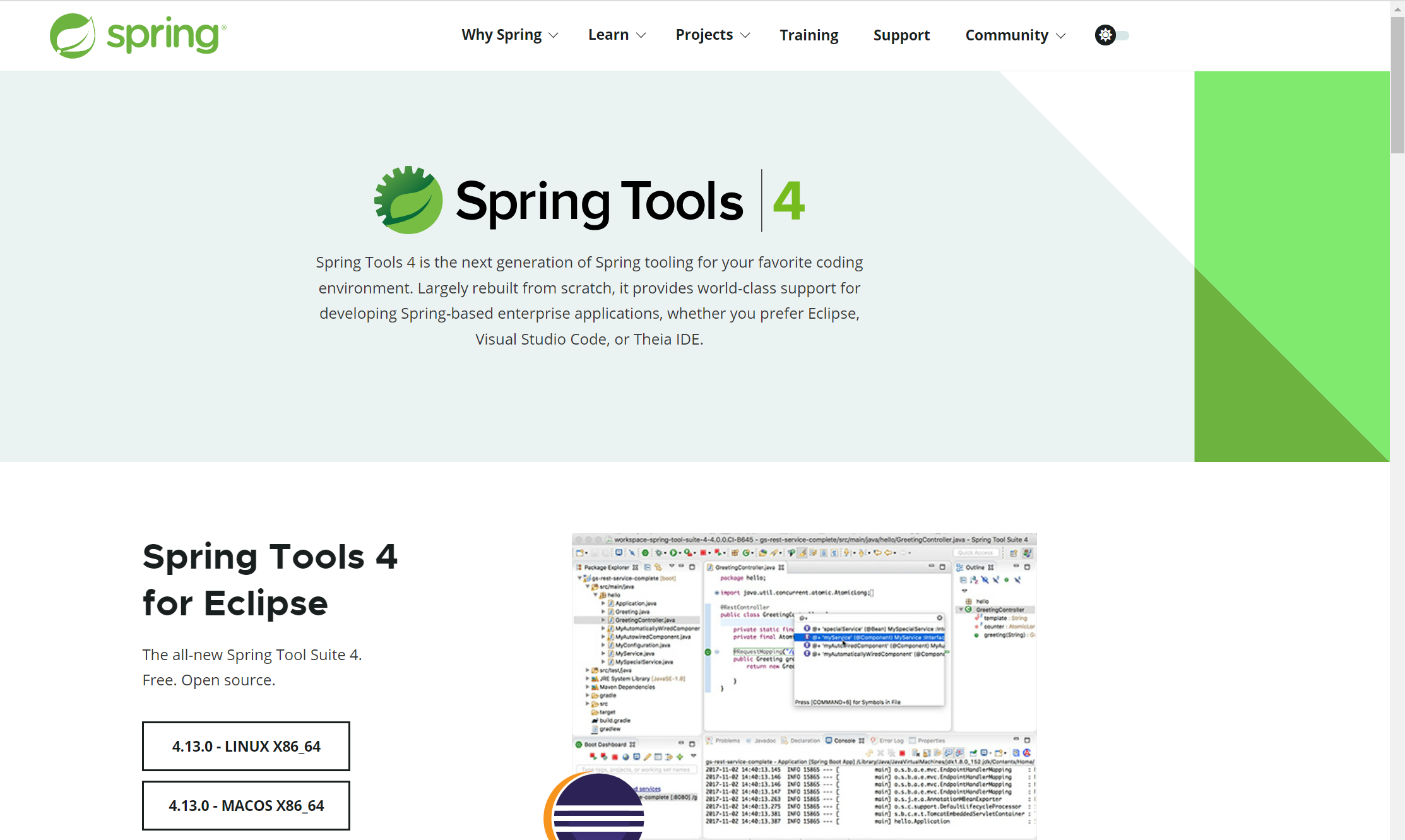 위 사이트로 들어가서 Projects > Spring Tools4 로 들어간다